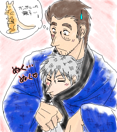 カンガルーの親子。寒いなーと思ったら描いてた。